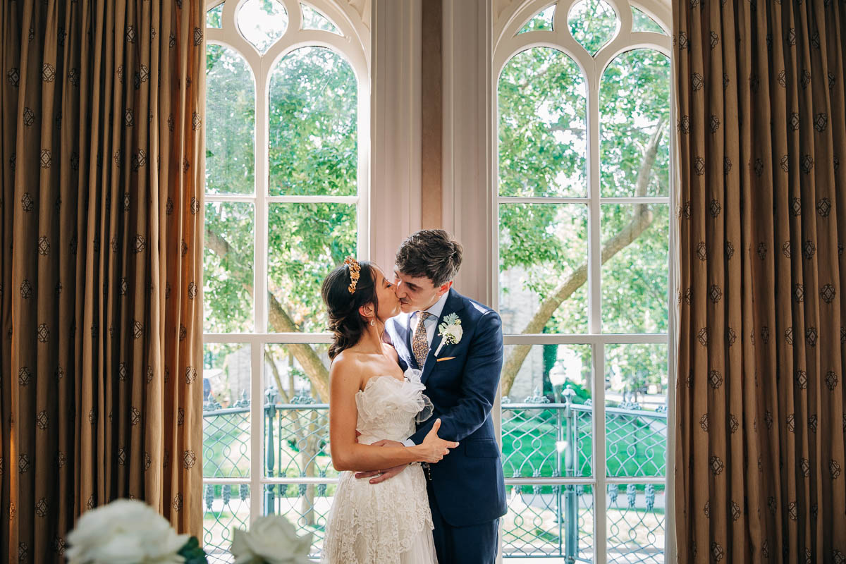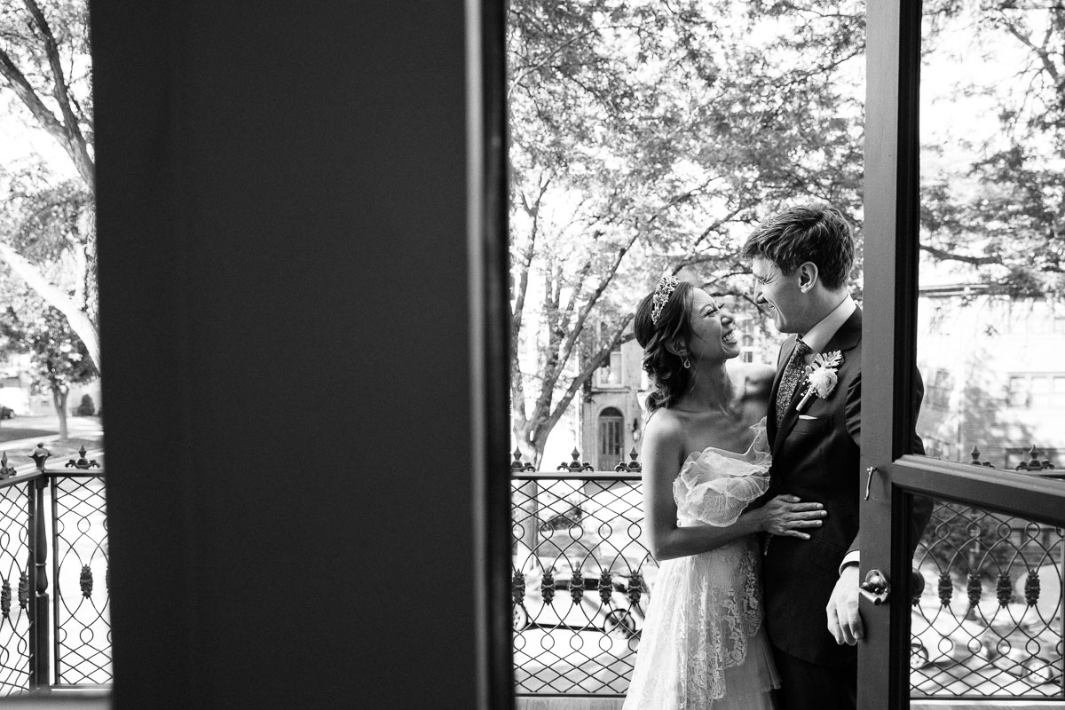After the intimate ceremony at Period Garden Park, the celebration continued at Mansion Hill Inn – Madison’s Boutique Hotel. This luxury, boutique hotel is a perfect environment for an elevated, one-of-a-kind wedding experience. Its decor is full of opulent paintings, chandeliers and glorious French doors that open onto an expansive balcony. Perfect for twirling in your wedding dress or seeing your groom for the first time during a First Look! Mansion Hill Inn is a fantastic choice if you are planning an intimate elopement in Madison as it is situated in a prime downtown location, steps from Capitol Square, State Street and the University of Wisconsin, Madison campus.