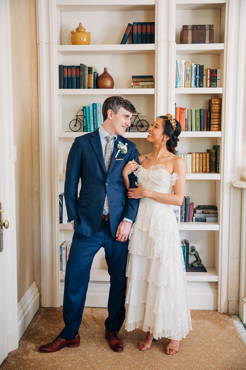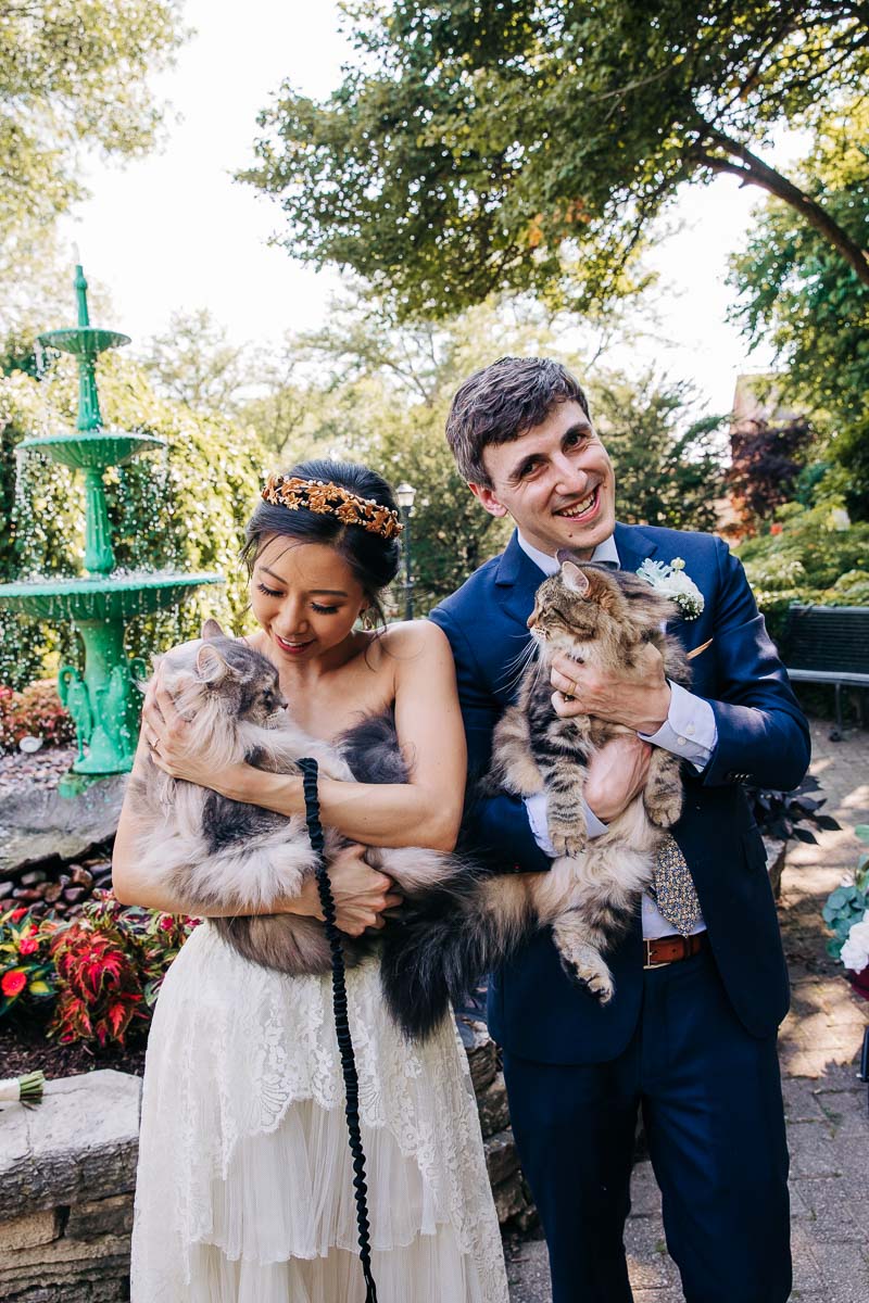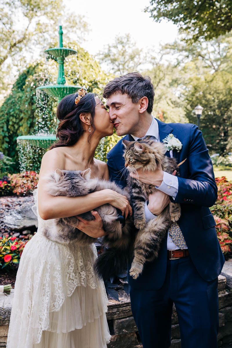 My time spent with Lisa & Mark and their immediate families was so special and intimate. We were able to celebrate with a champagne toast in front of the historic mansion that resulted in many joyful wedding photos! Lisa and Mark’s cats also made a special appearance for their wedding portraits! I loved the princess-esque vintage wedding dress that Lisa found on Etsy and really adored that they each proposed to each other, and then custom created wedding rings to exchange to each other during their ceremony.