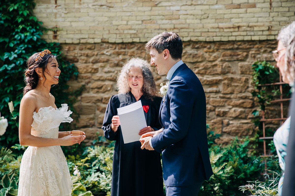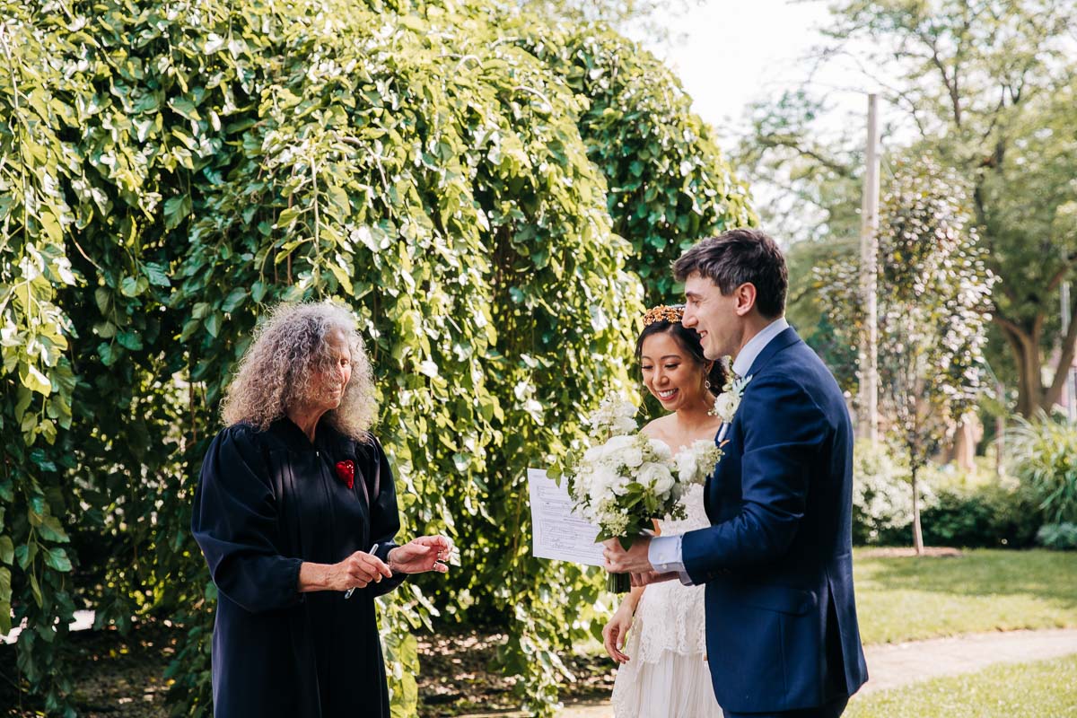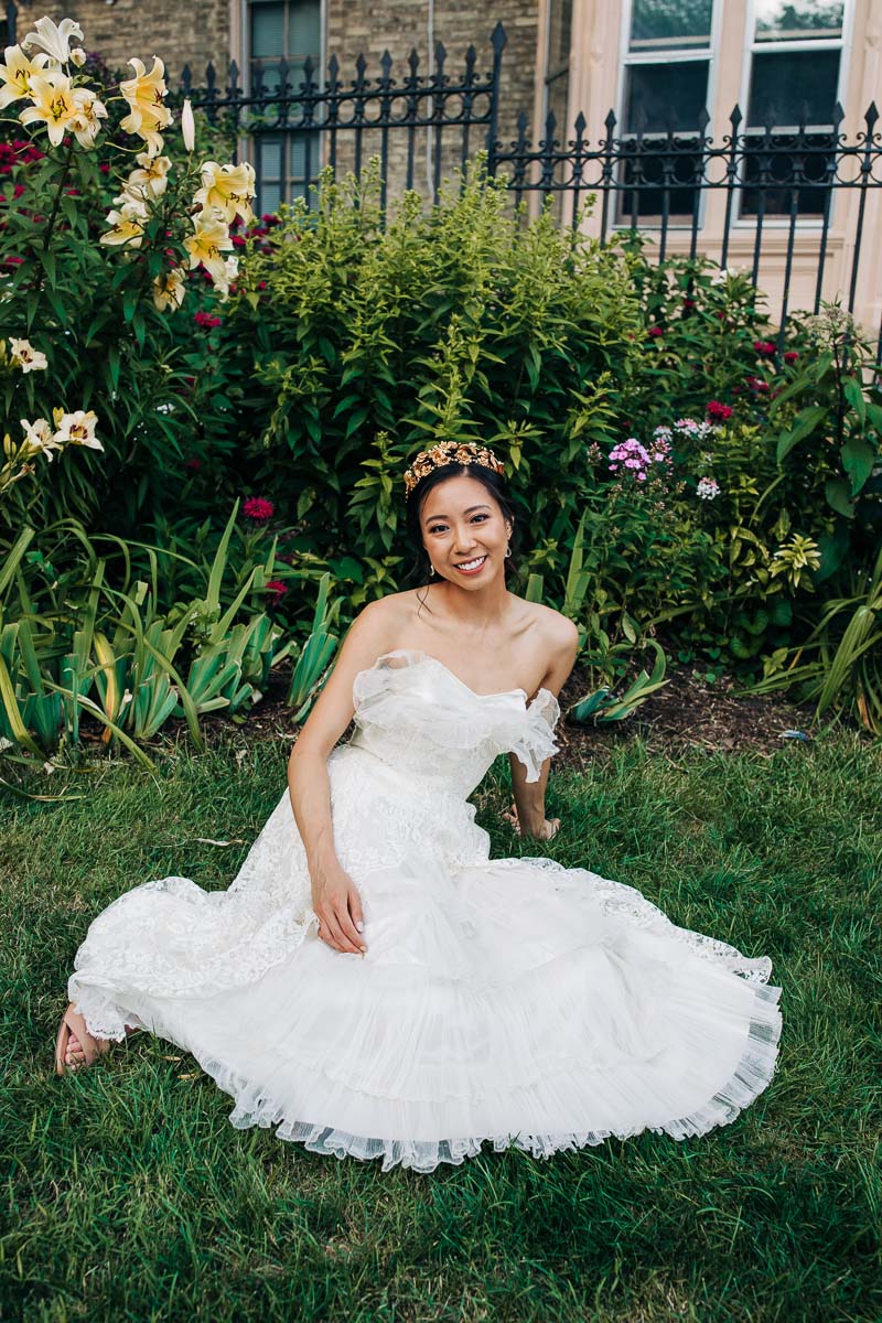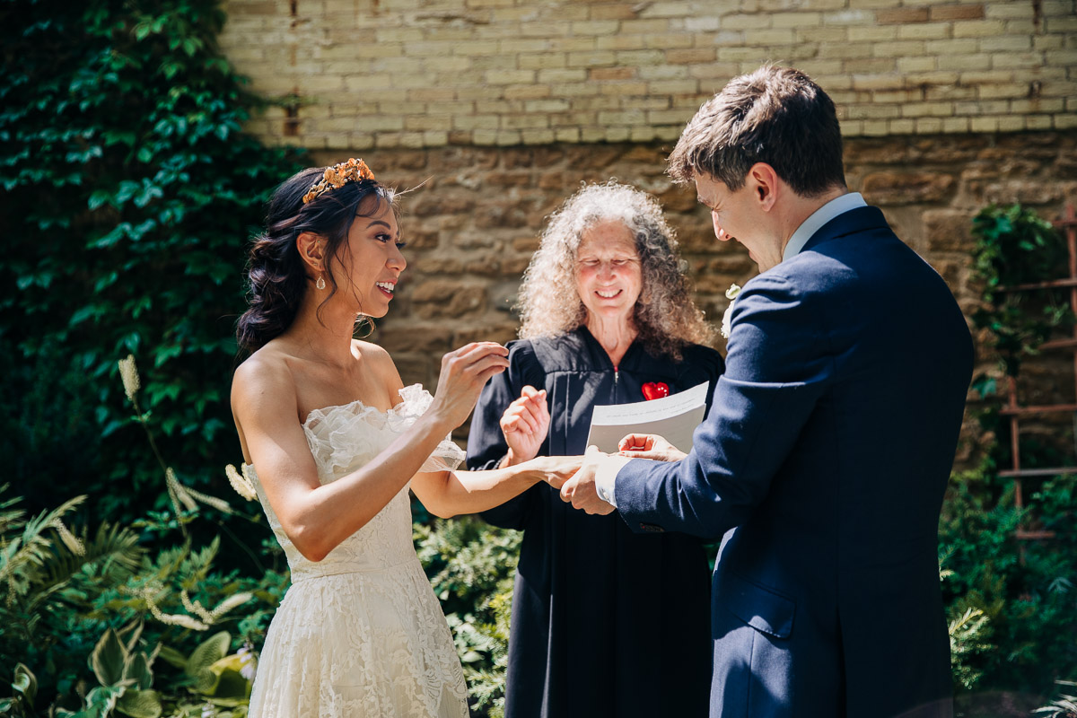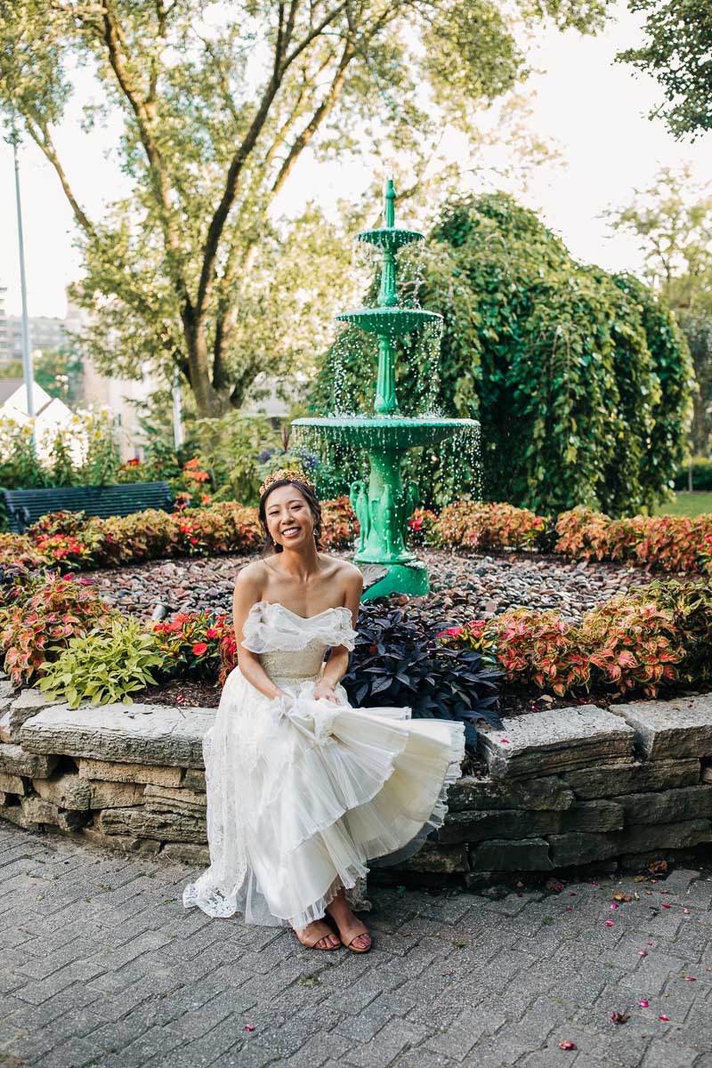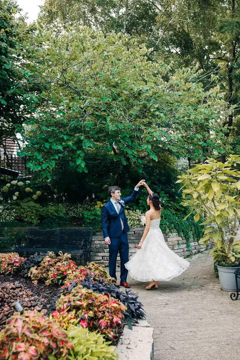 The couple below decided to celebrate their nuptials with an elopement on a Wednesday afternoon in July. The ceremony was held at the ever-beautiful Period Garden Park, located in the Mansion Hill District of downtown Madison, Wisconsin. This Victorian-era neighborhood city park is the perfect backdrop for couples seeking serene, lush gardens and beautifully manicured shrubs as well as a lovely fountain. The ceremony was held in the garden’s courtyard and featured an ivy covered cream city brick wall….my favorite! One interesting fact to note is that this park is tended by volunteers… what a beautiful oasis in the center of the city!